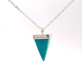 Elevate your style with this stunning artisan Guilleas Joyas pendant! The pyramid-shaped blue turquoise dazzles on the 17.75-inch chain, adding a pop of color to any outfit.