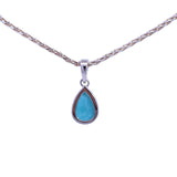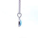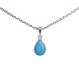 This elegant pendant features a pear-shaped Larimar cabochon, bezel set in high-polish sterling silver. Known for its dreamy Caribbean blue hues and gentle marbling, Larimar is a rare gemstone found only in the Dominican Republic. The sleek bezel setting highlights the stone’s natural beauty while offering a clean, modern look.