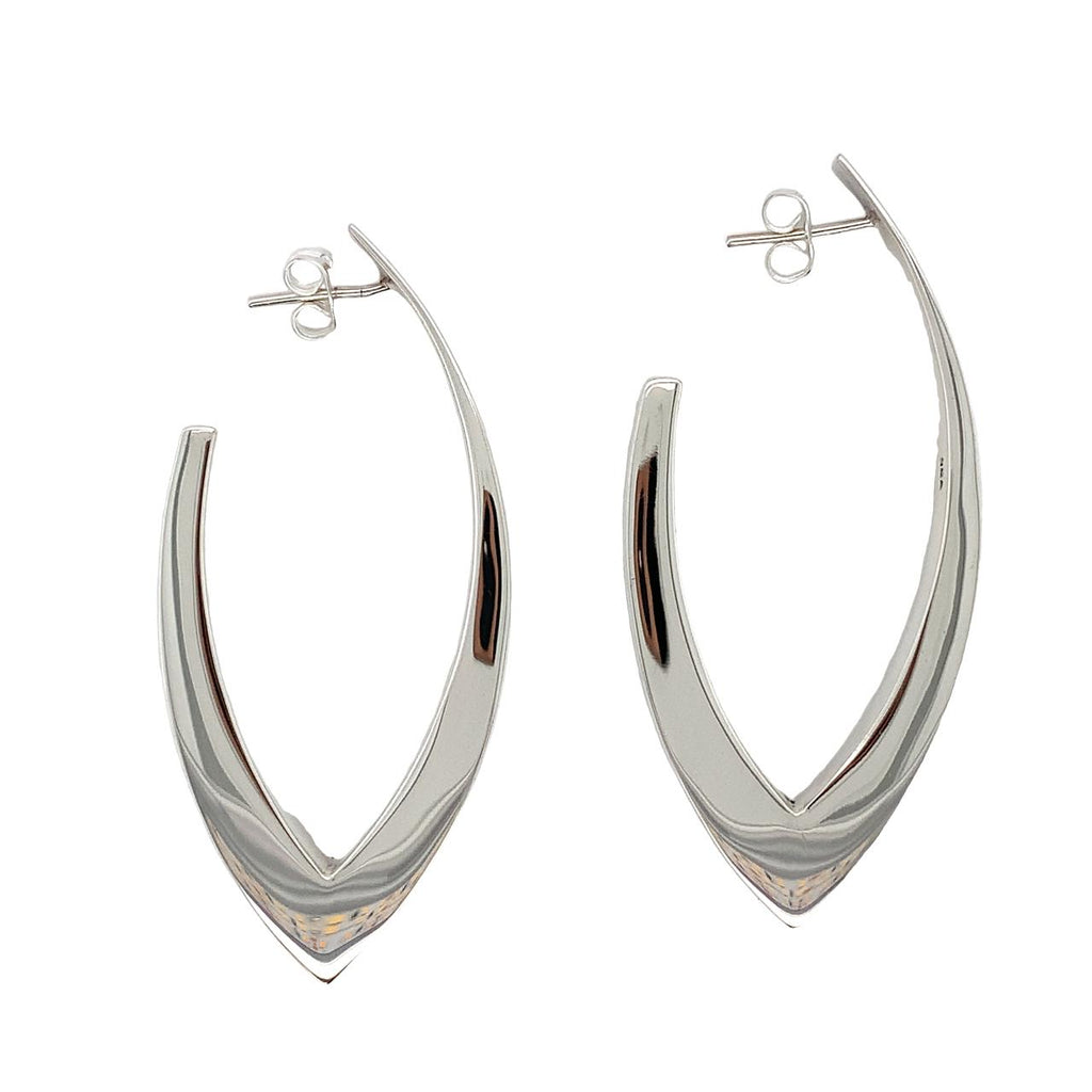 Sleek, sculptural, and distinctly modern, these artisan-made sterling silver hoops bring bold design to your everyday style. Crafted in a sharp V-shaped geometric silhouette, the abstract form creates a striking visual effect that catches the light from every angle. The high-polish finish enhances their clean, contemporary lines, while the open hoop design keeps them lightweight and comfortable to wear.