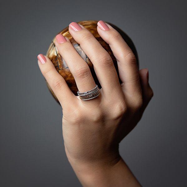 With a total Diamond Clarity Grade of VS–SI and Color Graded H–I (GIA standards), this design balances playful detail with refined elegance. Whether worn as a contemporary anniversary band, a chic stackable ring, or a statement on its own, it’s sure to become a favorite. Ring size 6.